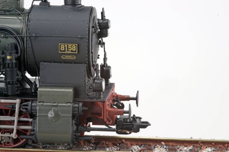 The T16.1 is the first ESU steam locomotive. The finely detailed model is mainly made of metal and has numerous separately applied detail parts. It goes without saying that we detail all the finer differences according to the prototype. The finely crafted wheels with their thin spokes are an eye catcher by themselves. The model represents a locomotive with worn wheel rims; therefore we could realise prototypical spacing between the axles. Thus there is sufficient space for the wheel flanges assuring safe running both with two rail or three rail track systems. In order to minimise any dimensional compromises of the chassis we guarantee superb performance and running qualities on radii of 420mm and larger. Since these locomotives were employed in local freight service as well as for shunting, the models are equipped with a digital coupler in the NEM shaft at both ends. Suitable loop and hook couplers with non-magnetic loop are supplied with the model. Of course, the synchronised smoke emission from the exhaust is either controlled by the axle sensor or by internal electronics of the LokSound decoder. Naturally we listened carefully to the prototype in order to replicate the sound as accurately as possible. Thus you can acoustically simulate the Riggenbach counter-pressure brake on a downhill grade by activating it with a function button. The sounds from the different air and feed pumps varied. In shunting mode the lower right lanterns will be turned on, just as it was common practice with the prototype. The third headlight can be switched separately in order to allow displaying the signal Zg7 indicating a special train travelling in the opposite direction. For the first time the lanterns are mounted as separate parts (where prototypical) in mass production. Whenever the fireman shovels coal (acoustically, of course), the fire box shows a soft glow.