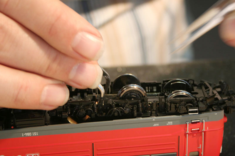 Should you experience a somewhat jerky running behaviour of your class 151 when traversing C track turnouts, you can remedy this easily and quickly. All you need is perhaps 15 to 20 minutes and some tools, which one would normally find in any model train enthusiast’s workshop.