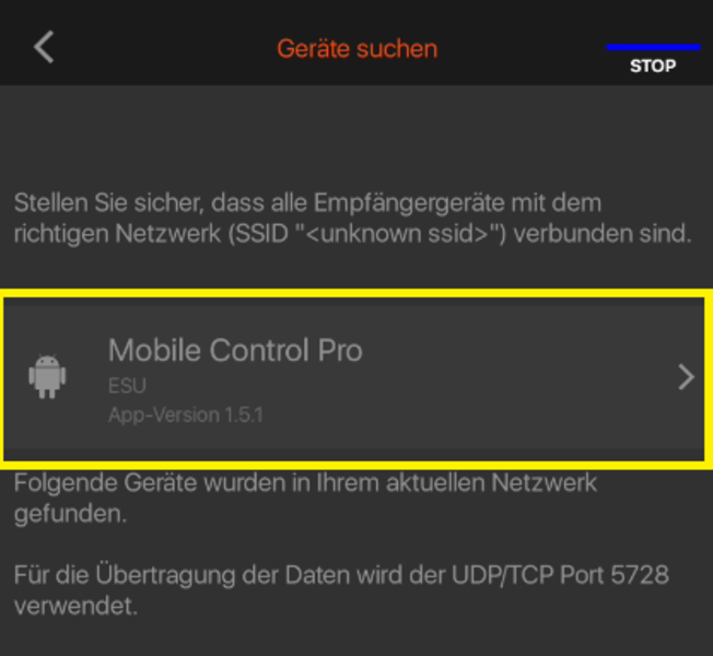 Damit die Übertragung klappt, müssen sowhl die Z21 App als auch das Mobile Control Pro mit der selben Z21 Zentrale verbunden sein (und sich folglich auch im gleichen WLAN befinden).