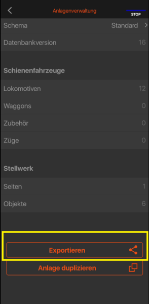 Da die Z21 keine interne Datenbank verwaltet, müssen Sie alle Lokomotiven und Magnetartikel sowohl in der Z21 App als auch dem Mobile Control Pro Regler manuell anlegen. Um Ihnen die Neu-Eingabe beim Umstieg von der App auf den "echten" Handregler zu ersparen, kann der Datenbestand aus der Z21 App exportiert und in der Mobile Control App eingelesen werden. Dies funktioniert problemlos, ab der Mobile Control App Version 2.0.9.